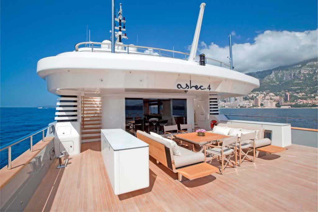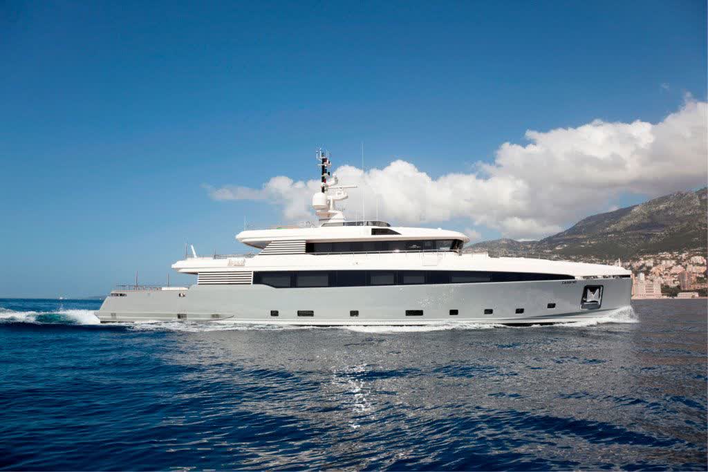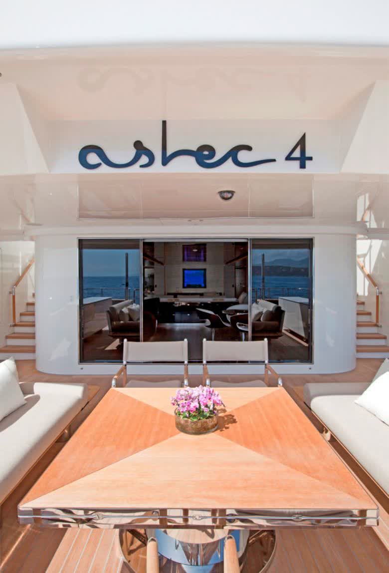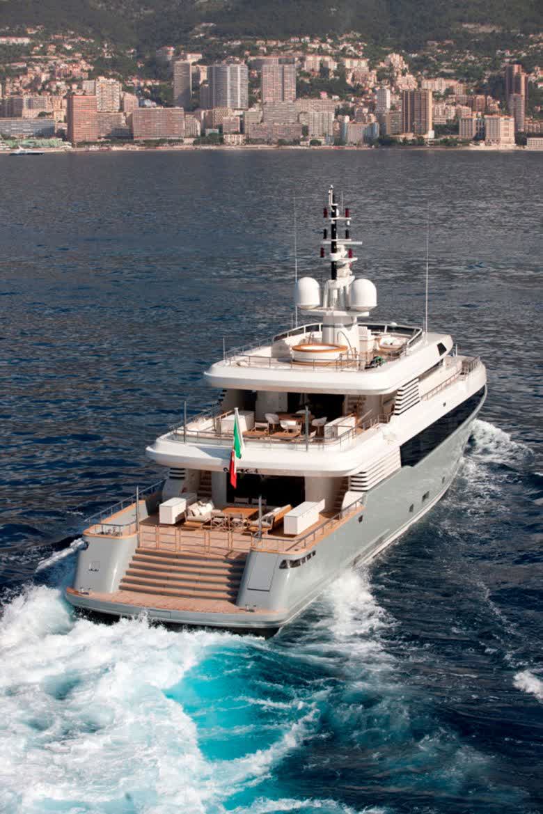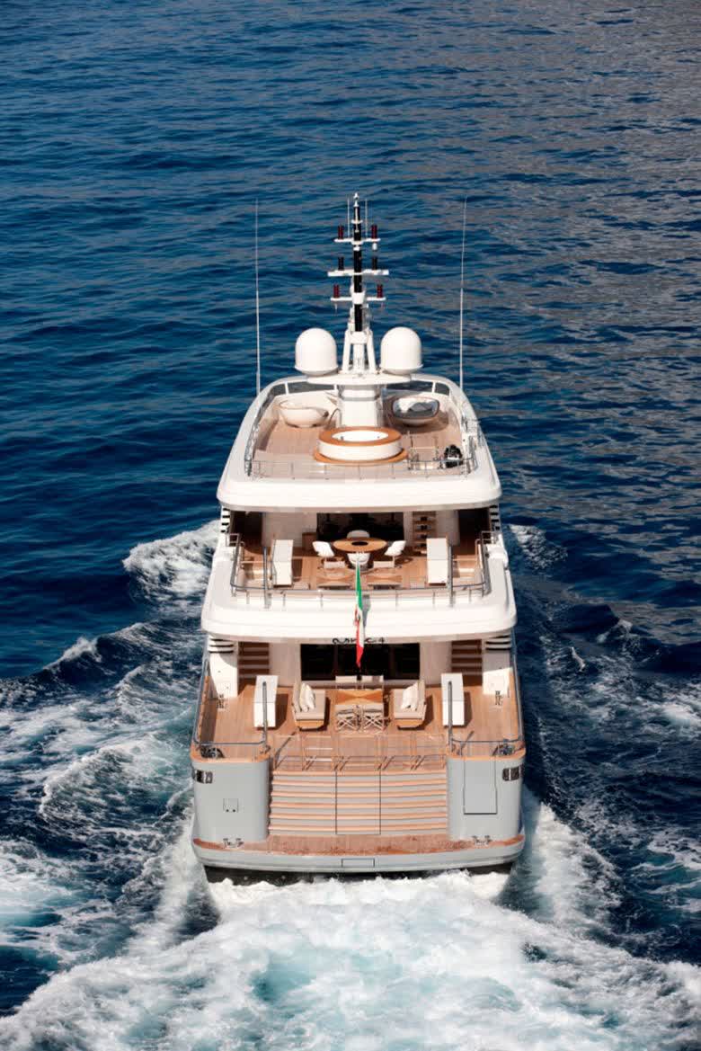 The yacht was designed with a special focus on the ship owner’s need and desire to take full advantage of the outdoor spaces, maintaining close contact with the sea. This explains why the craft was designed with a large, 70 metre aft cockpit offering maximum comfort. The vertical bow and decisive lines give the yacht a “military” look balanced by the harmony and the linearity of the interiors. The interiors by the French designer Remi Tessier were created with attention even to the smallest details, with a watchful eye on the choice of materials.