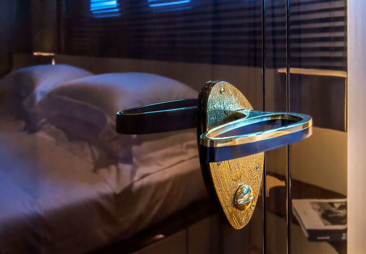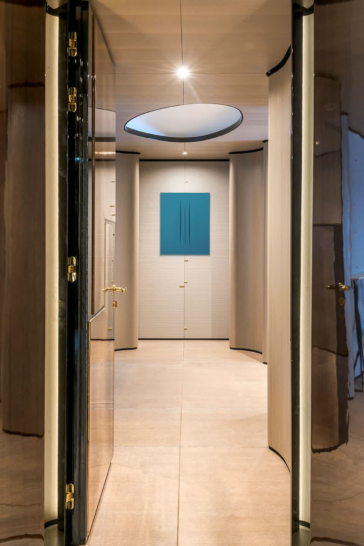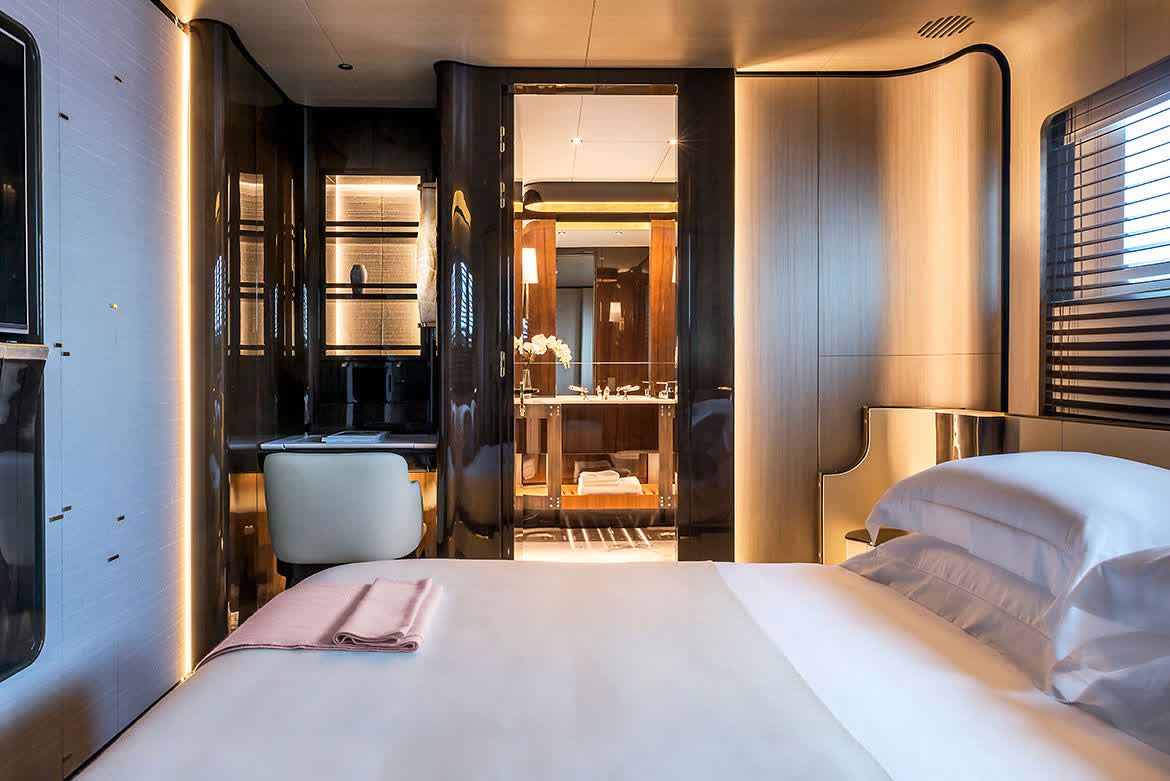 A light aluminium semi-planing hull and superstructure and twin MTU 12V4000 M93L engines with 2,580 kW power make this three-decker yacht a high-performance vessel with a speed of 23 knots. Its cruising performance is guaranteed by the Humphree Interceptors while the anti-rolling pair of stabilizers guarantee on-board comfort even when anchored in the harbour.