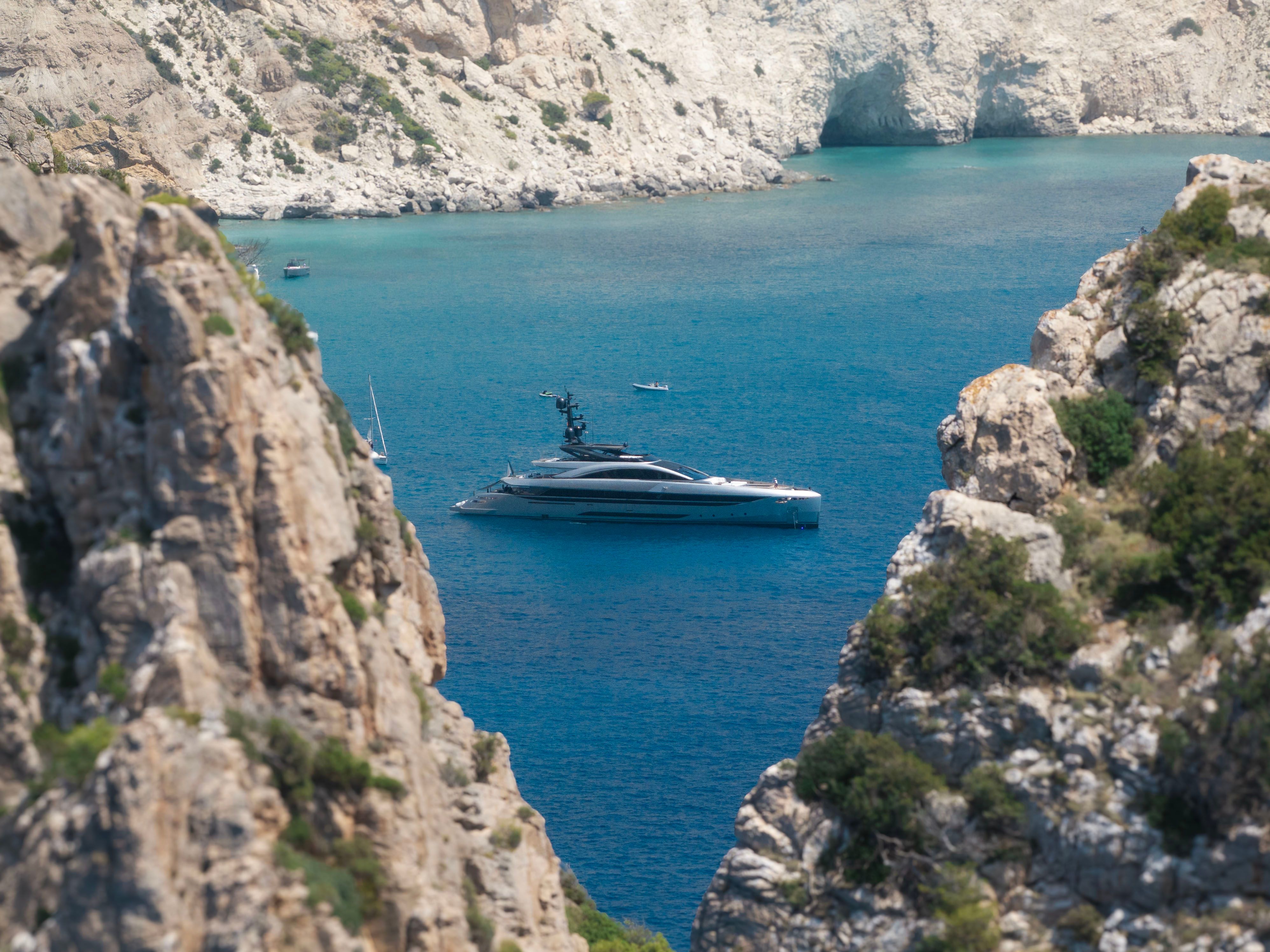 No Stress Two is an all-aluminum sport yacht with a fast displacement hull. The vessel has a dual power system: two diesel engines and two electric motors powered by both the generators and the battery pack; in electric mode, the system is managed by an artificial intelligence that monitors consumption. The overall exterior design of the No Stress Two is inspired by the sophisticated style of automotive icons. Key features and eye-catching aesthetic elements, such as the sleek silhouette and dynamic, elegant lines, make it well balanced, elegant, and fast.