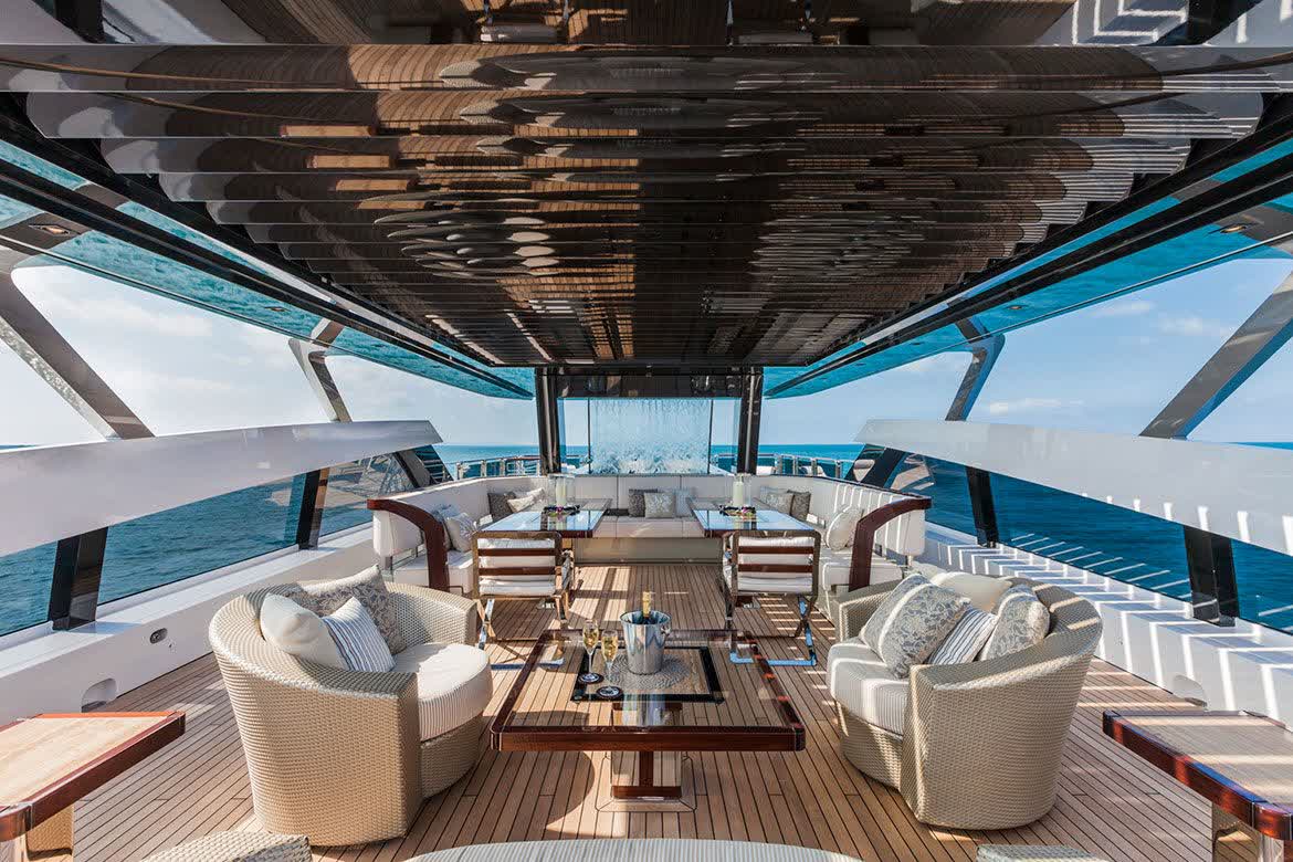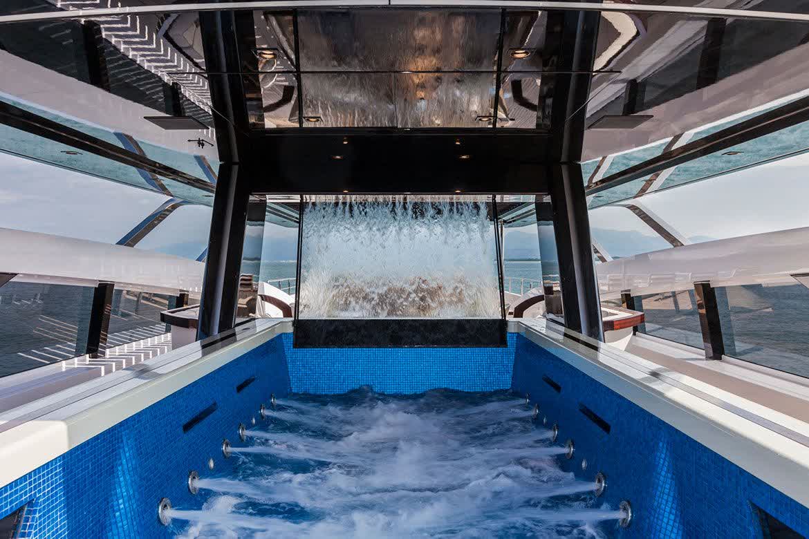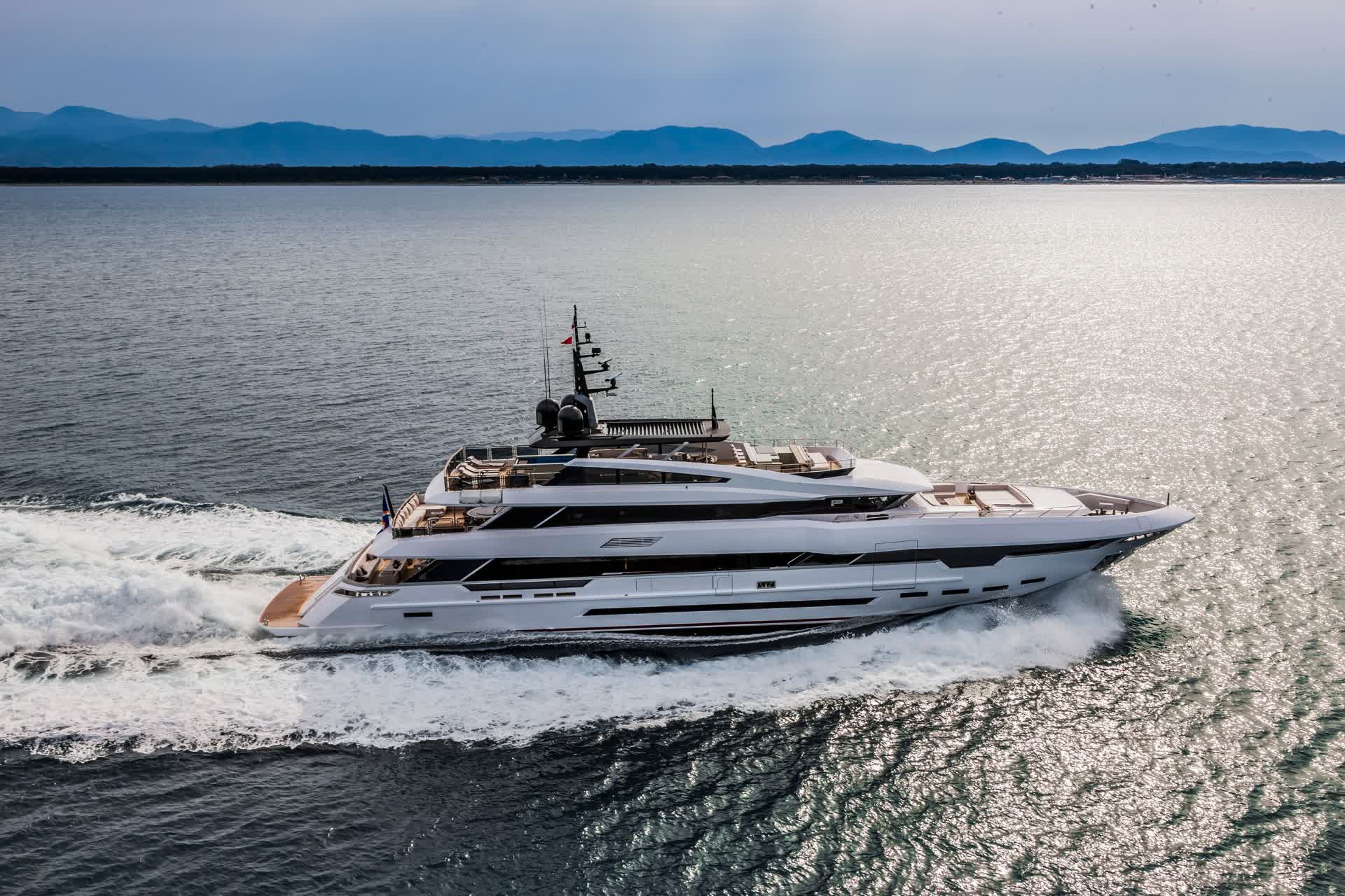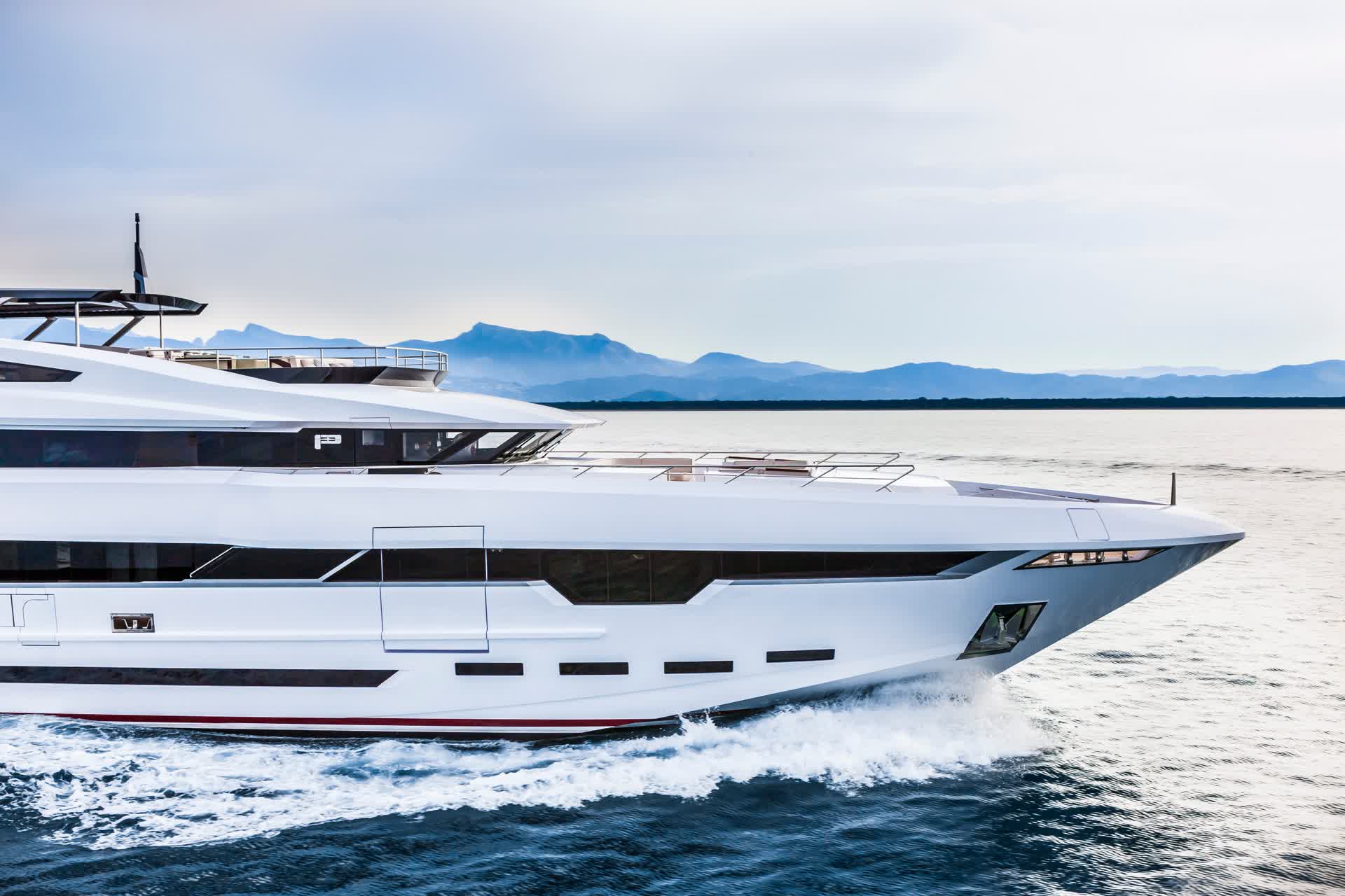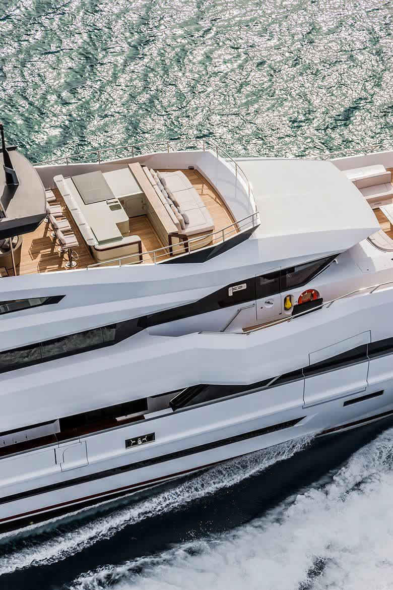 An elegant megayacht clean and dynamic, yet sporty and aggressive exterior lines.