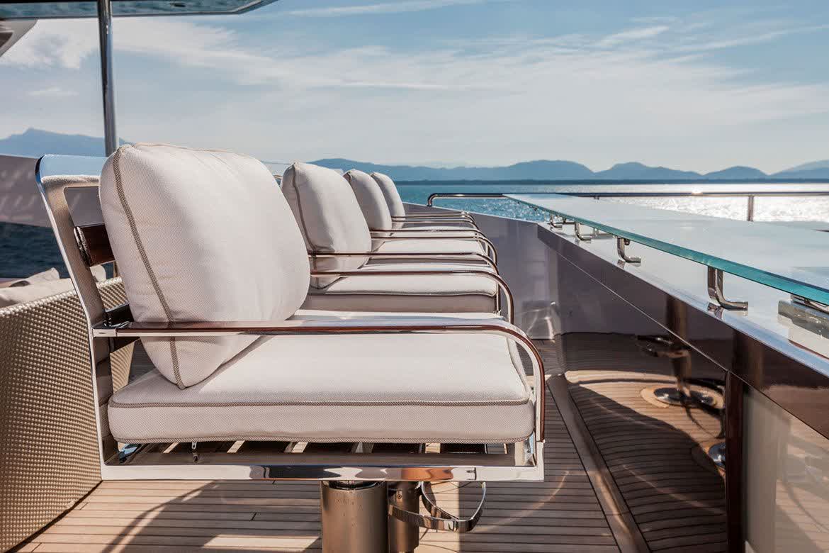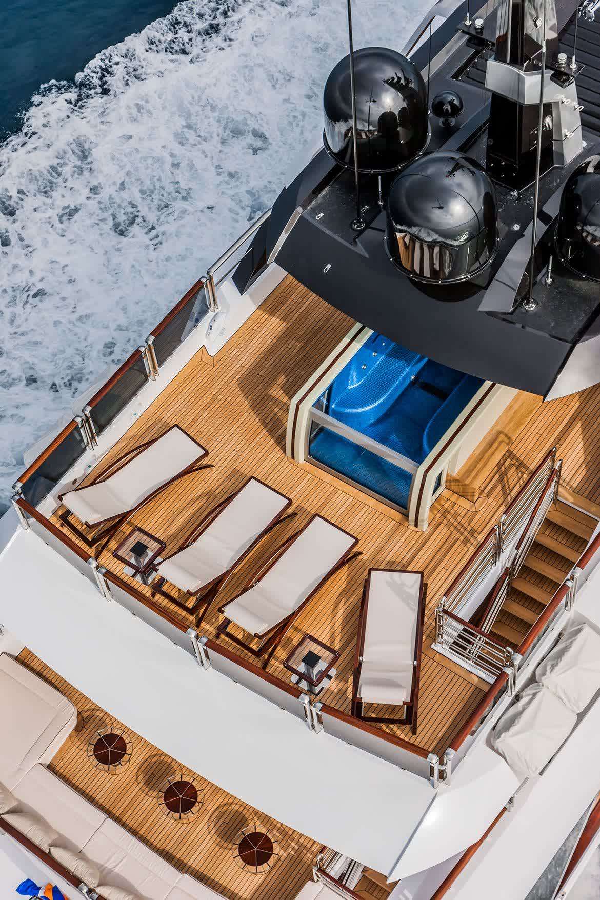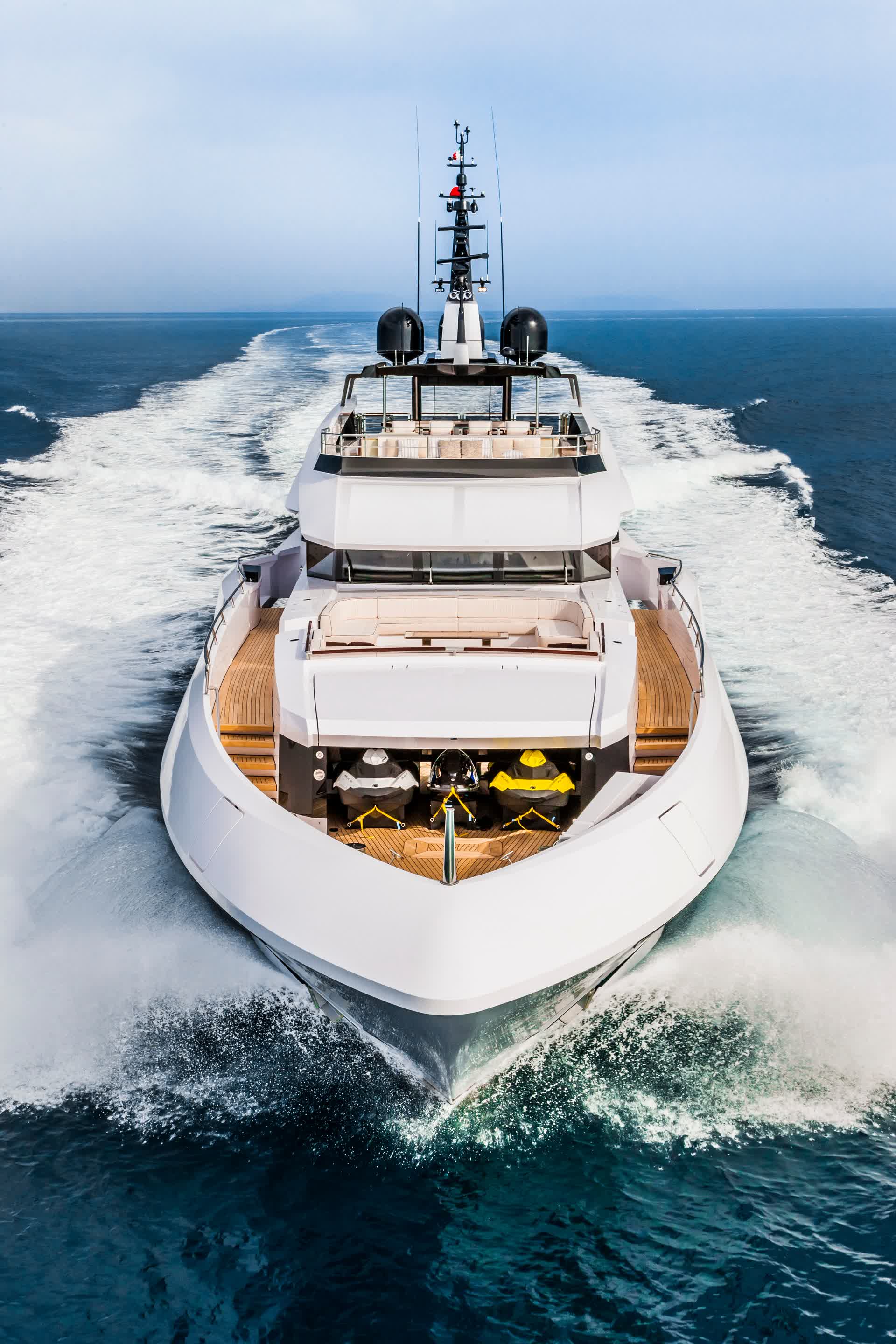 Hull and superstructure in marine grade aluminium, a semi-planing hull and two 2,580 kW 12V 4000 M93L MTU engines make this 49-metre a high-performance yacht that registered an official speed of 24.0 knots during sea trials. A tri-deck vessel with plenty of room, generously distributed inside and out.